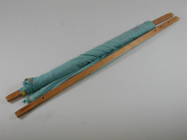 Blauw vilten doek, geplakt tussen twee stokken.- Trefwoorden