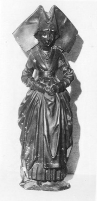 kopie naar een van de originele 'plorannen'. In 1879 werden de beelden, die opgesteld stonden in de vestibule van de raadzaal van het stadhuis (Prinsenhof), gebronsd. Van de vrouwenfiguur met grote uitstaande linnen kap zijn twee kopieën aanwezig (BA 491 en 492); een kopie van de vrouwenfiguur met bourrelet (BA 2529) ontbreekt. Zie voor het originele beeld BA 2527. ( Mieke van der Wal)