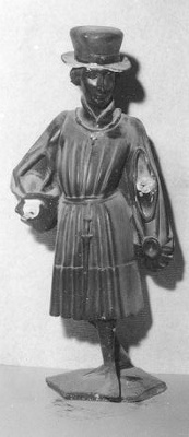 kopie naar een van de originele 'plorannen'. In 1879 werden de beelden, die opgesteld stonden in de vestibule van de raadzaal van het stadhuis (Prinsenhof), gebronsd. Van de vrouwenfiguur met grote uitstaande linnen kap zijn twee kopieën aanwezig (BA 491 en 492); een kopie van de vrouwenfiguur met bourrelet (BA 2529) ontbreekt. Zie voor het originele beeld BA 2534. ( Mieke van der Wal)