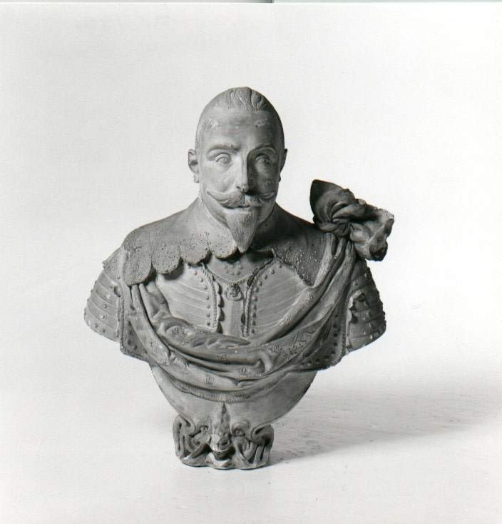 Afgietsel naar het model van de portretbuste door Hendrick de Keyser jr, die in 1948 in bruikleen werd gegeven aan het Rijksmuseum te Amsterdam. In dit museum bevond zich een gipsafgietsel van dit portret, dat mogelijk toen naar het Amsterdams Historisch Museum is gekomen. Een ander afgietsel van de portretbuste bevindt zich in het portaal van 'Het huis met de hoofden', Keizersgracht 123. ( Mieke van der Wal)