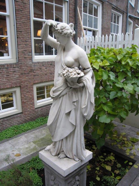 De tuinarchitect Leonard A. Springer (1855-1940) heeft dit beeld aangekocht uit de tuin 'De Nederlanden', aan de Buitensingel tussen de Leidse Poort en de Raambarrière, ter plaatsing in de door hem ontworpen museumtuin van Het Broekerhuis. Na liquidatie werd de hele verzameling aangekocht door douairière S. A. Lopez Suasso-de Bruijn. De Alblasserdamsche Terracotta fabriek, waar ondermeer tuinvazen en tuinbeelden werden geproduceerd, heeft waarschijnlijk maar kort bestaan, tussen circa 1870 en 1890, als nevenbedrijf van de steenbakkerij van C. J. Vroege te Alblasserdam. ( Mieke van der Wal)