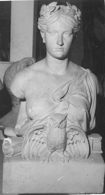ontwerp voor de buste van Minerva met uil, te plaatsen op het fronton boven de ingang van het in 1885 in gebruik genomen gebouw van het Stedelijk Gymnasium (nu: Barlaeus-gymnasium) aan de Weteringschans te Amsterdam. In de uitgevoerde versie is in de haarversiering een ster opgenomen, die hier ontbreekt. Van Hove ontwierp ook de allegorische groep met drie figuren die het gebouw bekroont. ( Mieke van der Wal)
