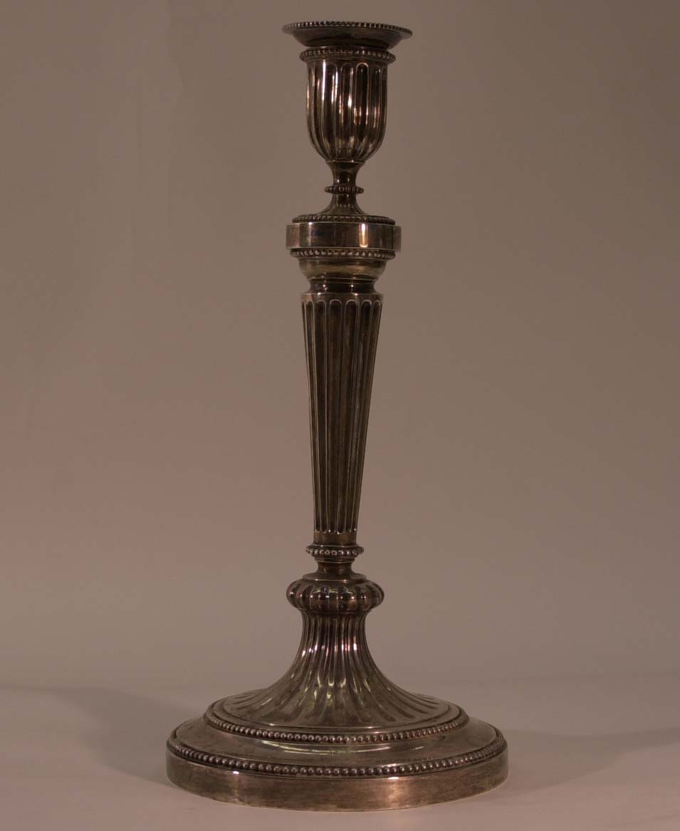 Gecanneleerde zilveren kandelaar.- Trefwoorden