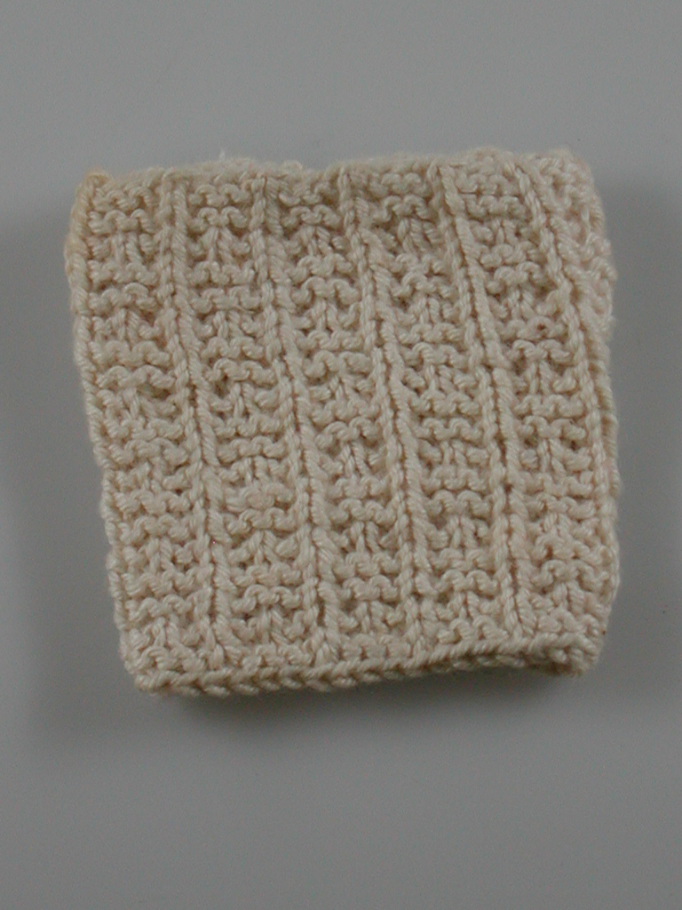 Gebreid boord van naturelkleurig katoen. Handwerkproef van mevr. R.A.J. Grabrandt.- Trefwoorden