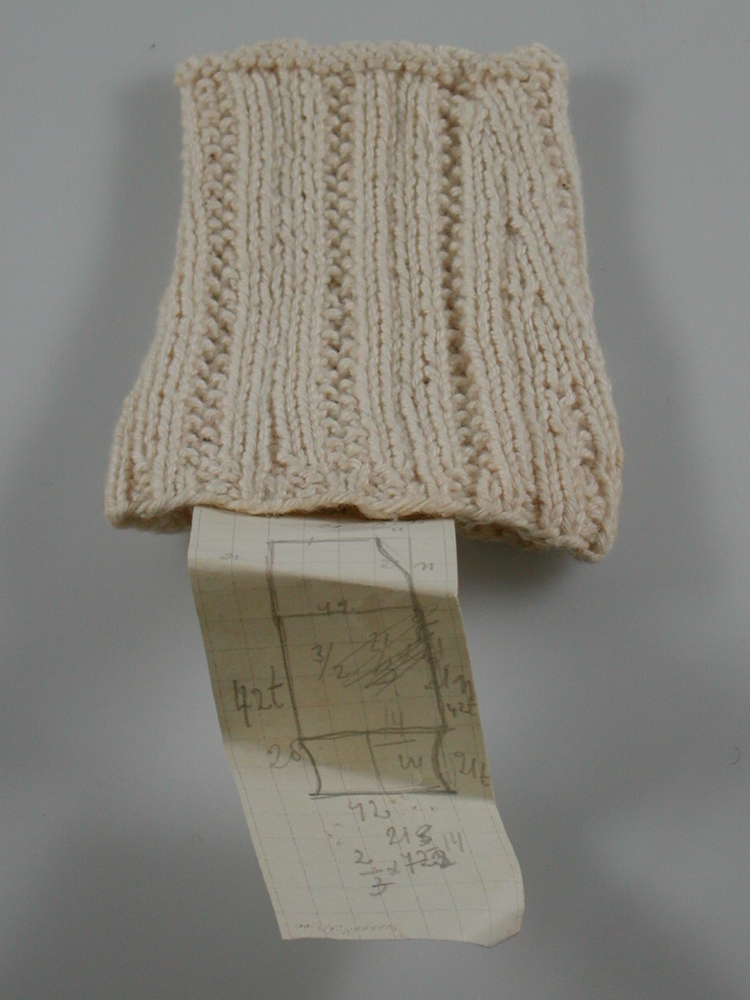 Gebreid boord van naturelkleurig katoen. Handwerkproef van mevr. R.A.J. Grabrandt.- Trefwoorden