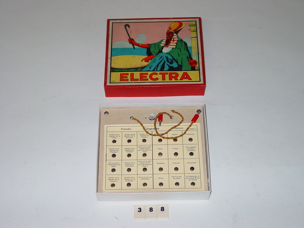 speeltafel met lamp en draden; 6 vragenvellen- Trefwoorden