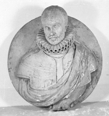 Kopie naar het marmeren portretmedaillon van Willem de Zwijger uit de werkplaats van Hendrick de Keyser (1565-1621)(BA 2549), sinds 1887 in bruikleen aan het Rijksmuseum te Amsterdam.. Het portret is een vrije navolging naar de zittende bronzen figuur van de prins op het praalgraf door De Keyser in de Nieuwe Kerk te Delft. Op 21 mei 1878 berichtte de gemeente-archivaris aan B&W dat ondermeer van de voormalige Koninklijke Academie naar het stadhuis was overgebracht het 'borstbeeld in pleister van Prins Willem I'. In de in november van hetzelfde jaar door de Rijksacademie opgestelde lijst van niet in één der verzamelingen op te nemen objecten, komt, naast het marmeren medaillon van Willem de Zwijger, alleen voor 'een vorm op een marmeren portret van Willem I'.