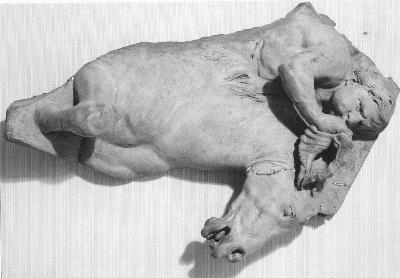 - Catalogus beelden AHM 1995Schets voor het marmeren timpaan van de voorgevel van het 17de-eeuwse stadhuis: de zeefoden brengen hulde aan de Amsterdamse stedemaagd, de groep rechts van de tronende stedemaagd.