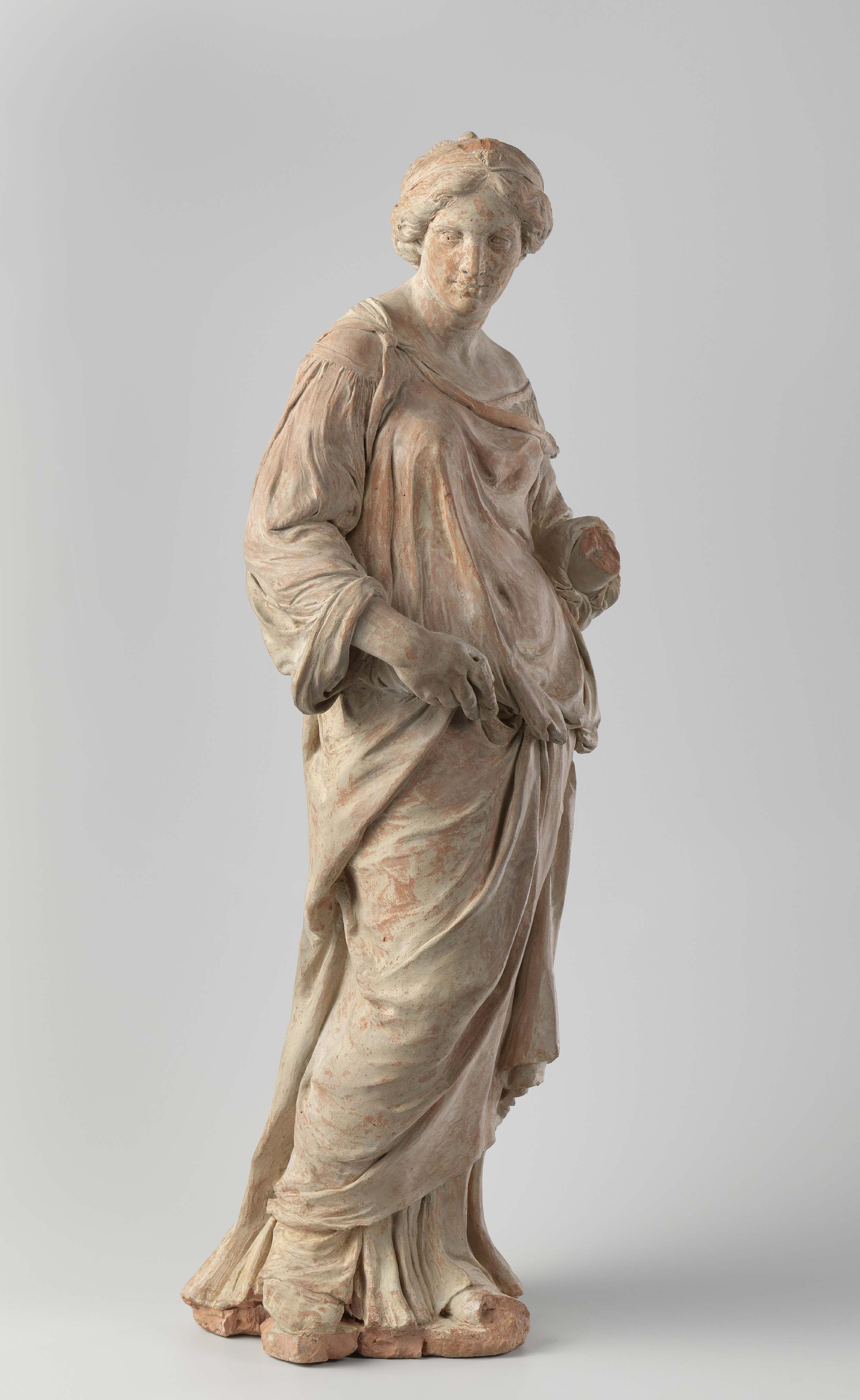 Model voor het meer dan levensgrote bronzen beeld van de Gerechtigheid, rechts op het timpaan van de voorgevel van het stadhuis op de Dam, tussen 1660 en 1665 door de gebroeders Hemony gegoten.