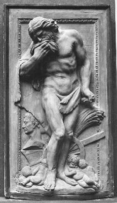 Model voor een niet uitgevoerd ontwerp voor het marmeren reliëf van Saturnus in de noordoosthoek van de noordelijke galerij van het stadhuis op de Dam. Zie voor het wel uitgevoerde ontwerp (BA 2457). Waarom Saturnus 1 niet in uitvoering werd genomen is onbekend. Wellicht vond men de compositie en de iconografie van het ontwerp - deels te herleiden op Ripa - onbevredigend. In de bewaard gebleven Quellinus-rekeningen wordt geen geboetseerde voorstelling met Saturnus genoemd.