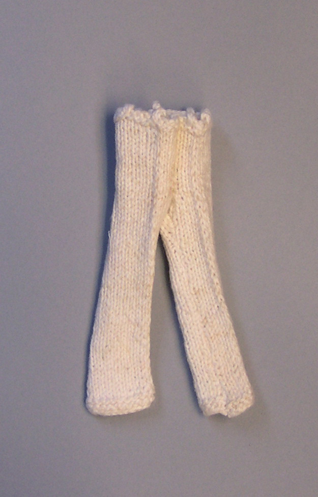 Lange broek, gebreid in tricotsteek van witte wol.- Trefwoorden