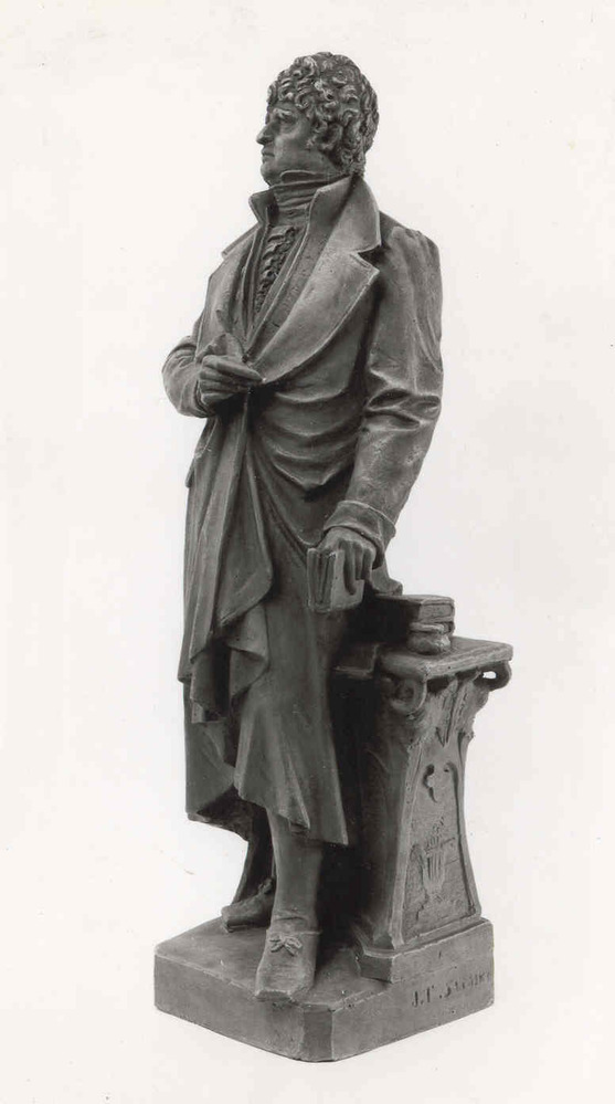 Ontwerp voor standbeeld dat, voor zover bekend, niet is uitgevoerd. Van dit ontwerp zijn vier exemplaren bekend, die onderling kleine verschillen vertonen: dit exemplaar, twee in de collectie van het Rijksmuseum en een die is afgebeeld op een foto in het Bilderdijkmuseum te Amsterdam. De eerste drie exemplaren zijn niet gedateerd. Onder de foto in het Bilderdijkmuseum staat geschreven: "Johan Th. Stracké sculps. 's Bosch 1877". Of dit een transcriptie is van een signering en datering op het beeld is niet bekend. Mogelijk zijn de beeldjes gemaakt omstreeks 1881, 50 jaar na de dood van de schrijver. ( Mieke van der Wal)