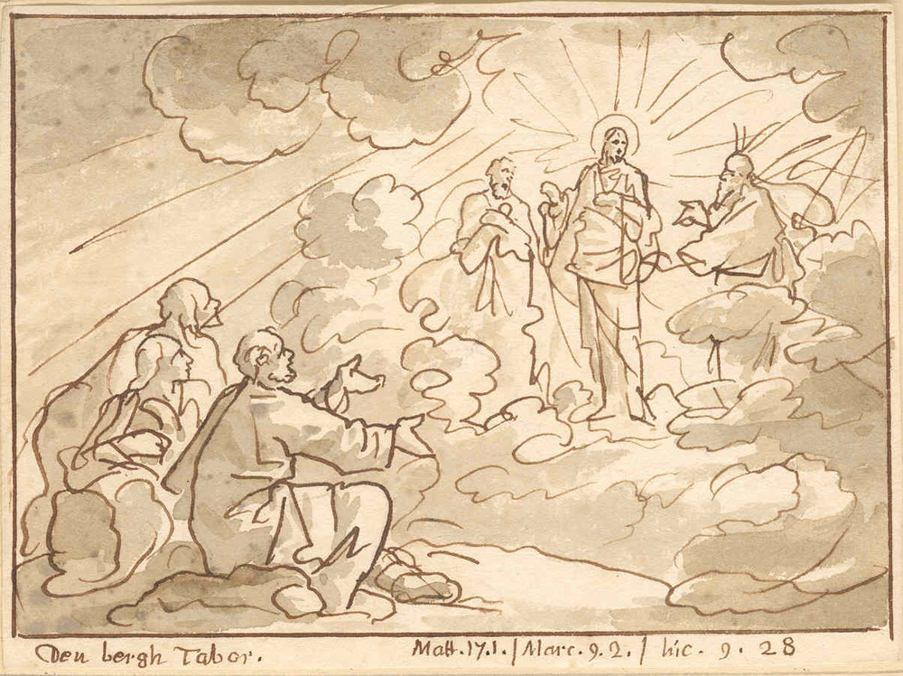 - onderschrift buiten kader: Den bergh Tabor. Matt.17.1. | Marc.9.2. | hic. 9. 28: titel