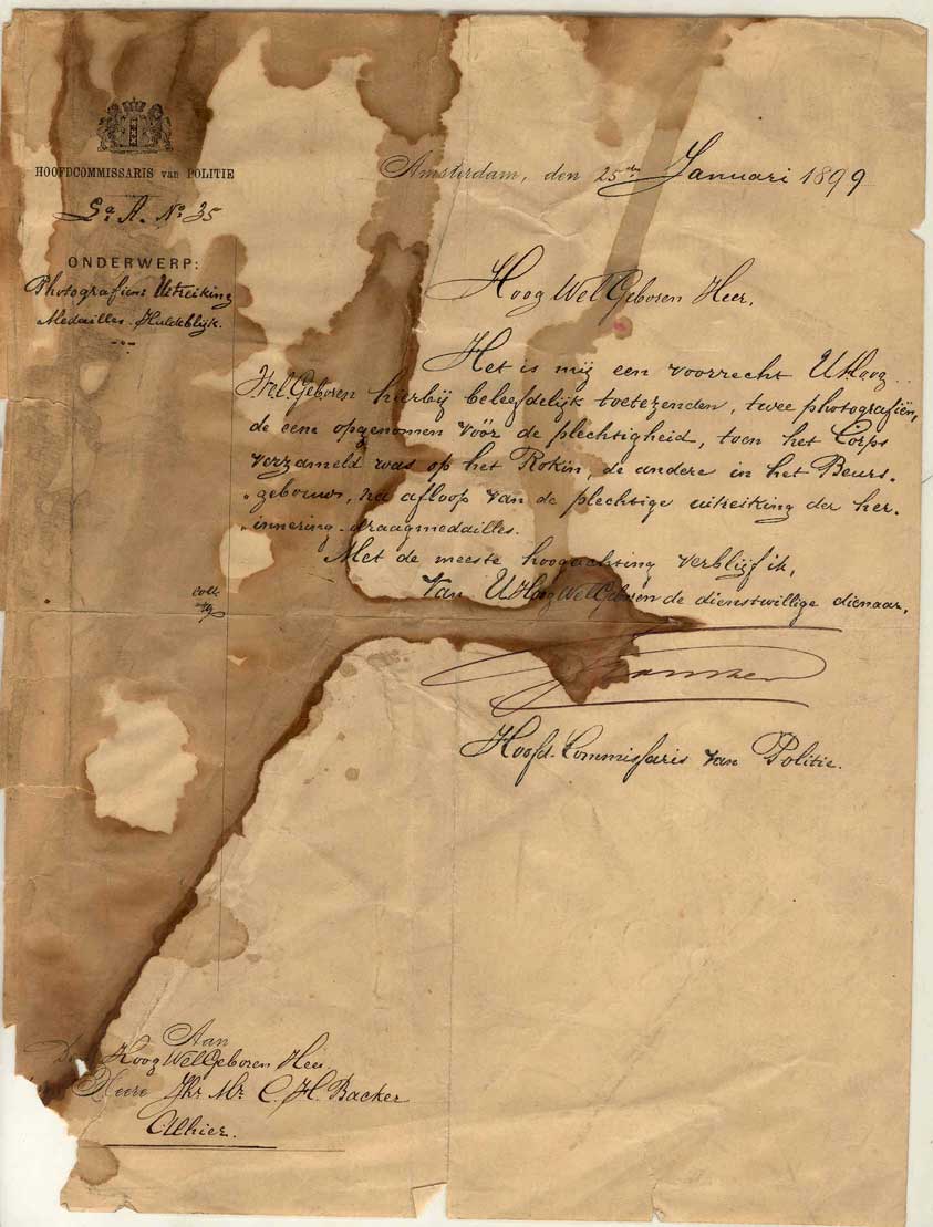 - Brief van hoofdcommissaris van politie aan C.H. Backer, 1899