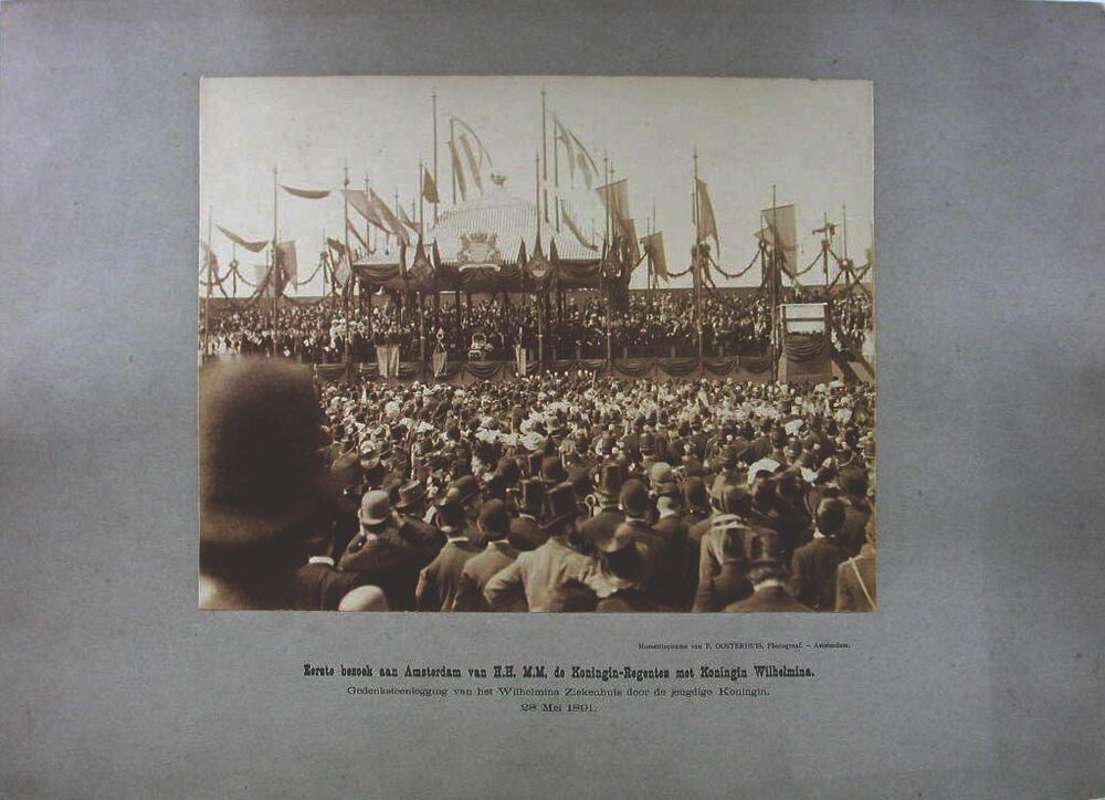 - Eerste bezoek aan Amsterdam van H.H. M.M. de Koningin -Regentes met Koningin Wilhelmina (gedenksteenlegging van het Wilhelmina Ziekenhuis door de jeugdige Koningin 28 mei-1891), 1891 - 1892