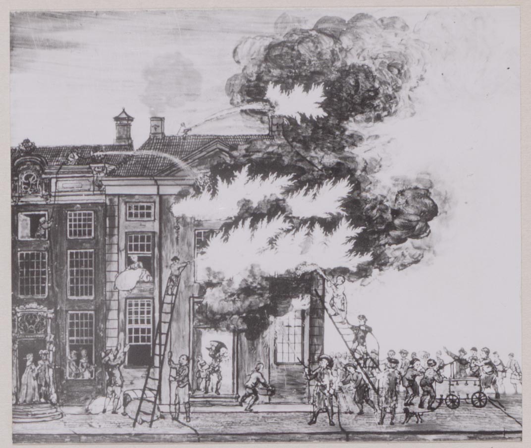 - Glasplaten van een transparant (afb. brandend huis met brandspuit en brandweer)