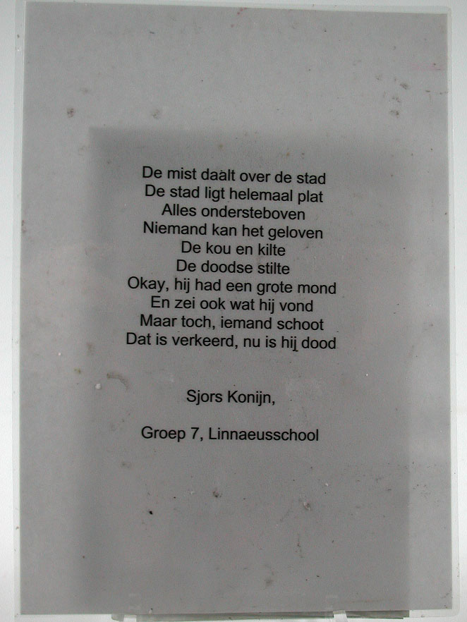 - Memorabilia afkomstig van plek van moordaanslag op Theo van Gogh (gedicht), 2004