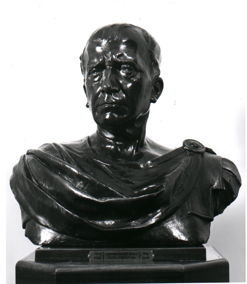 Repliek van een portret uit 1902, vervaardigd naar aanleiding van de 70ste verjaardag van deze acteur, die is voorgesteld in de rol van Coriolanus in het gelijknamige stuk door William Shakespeare (portret in Rijksmuseum). Een gipsen versie, toentertijd bezit van het Rijksmuseum, maakte deel uit van een herdenkingstentoonstelling, die na het overlijden van Bouwmeester werd gehouden in het Toneelmuseum te Amsterdam. ( Mieke van der Wal)