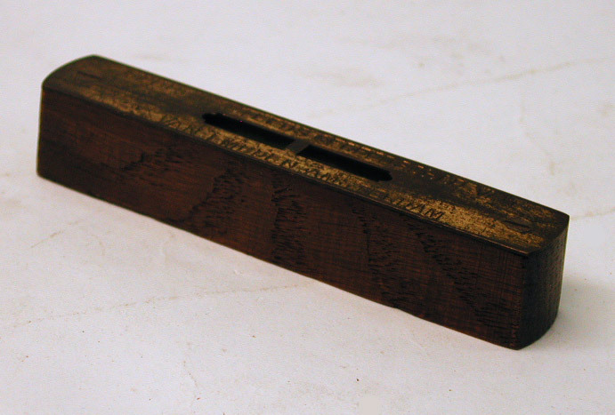 Eikenhouten balkje met glazen buisje met daarin vloeistof. Waterpas heeft metalen afdekplaatje.- Trefwoorden