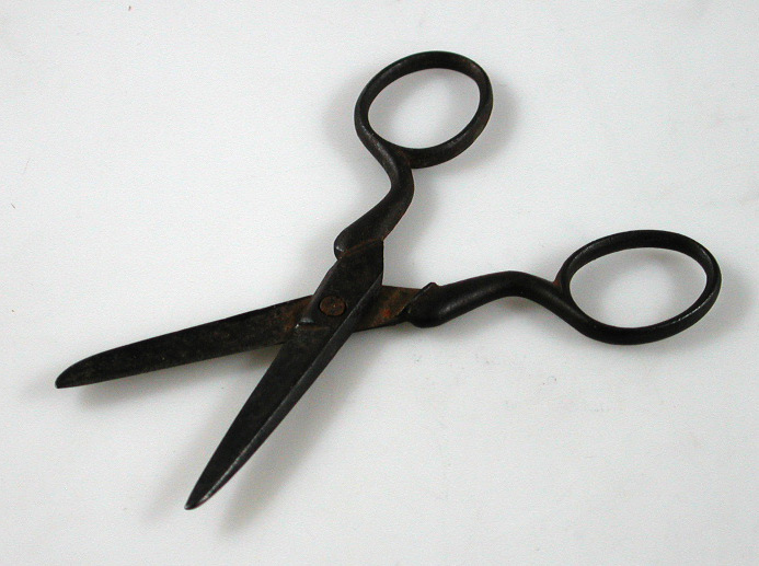 Kleine metalen schaar met sierlijke lijn.- Trefwoorden