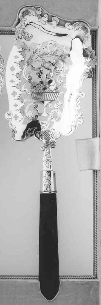 Met de welstand van de negentiende-eeuwse burgerij nam de behoefte aan comfort toe. Dit leidde onder meer tot een aanzienlijke uitbreiding van het assortiment tafelgerei. Deze kist met zijn kostbare inhoud illustreert die ontwikkeling op treffende wijze. De meeste onderdelen zijn bestemd voor het opdienen van verschillende soorten desserts. Het is echter niet onmogelijk dat de botervorkjes tevens gebruikt zijn als vleesvorkjes en dat met het saladecouvert ook wel fruit is opgediend. Daarnaast zouden het taartmes en de taartvork hebben kunnen dienen voor het serveren van meloen of vis.