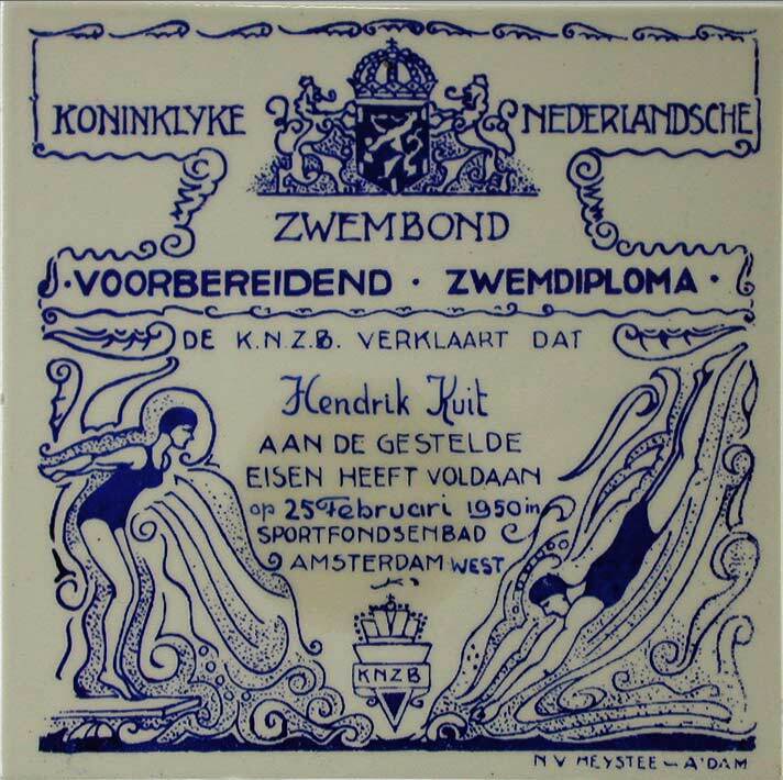 - Tegel uitgereikt t.g.v. behalen van voorbereidend zwemdiploma, 1950