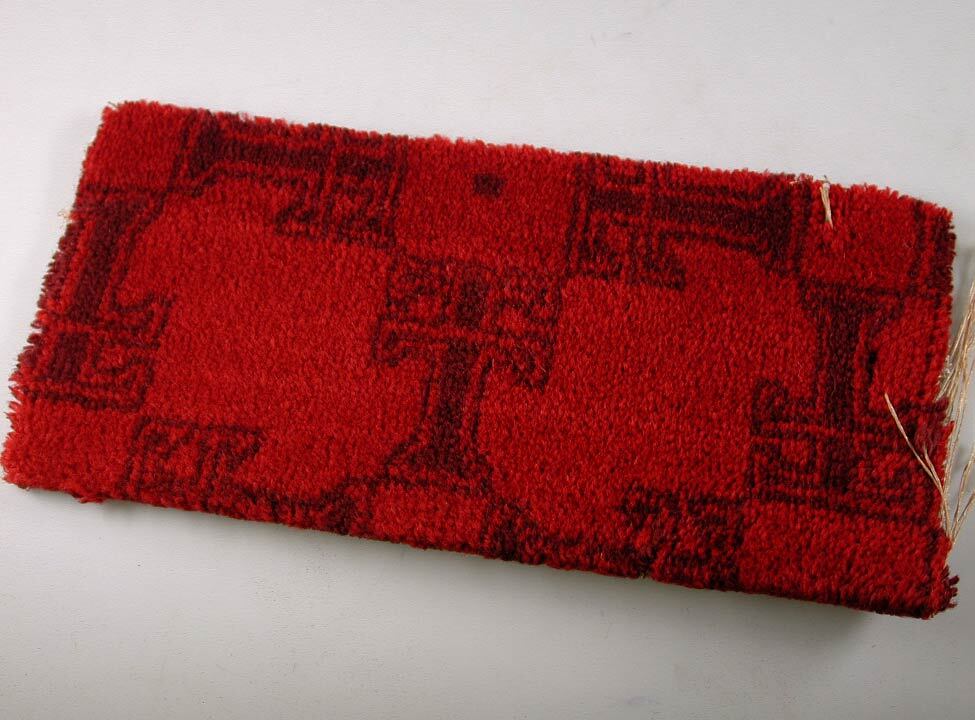 Vloerbedekkingsfragment uit Tuschinski. Poolweefsel uit de jaren 30. Rood wol met ingeweven, bruin 'dubbel T-motief'. Waarschijnlijk afkomstig uit de grote zaal of de wandelgang.- Trefwoorden