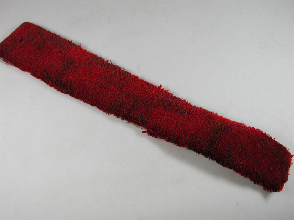 Vloerbedekkingsfragment uit Tuschinski. Poolweefsel uit de jaren 30. Rood wol met ingeweven, bruin 'dubbel T-motief'. Waarschijnlijk afkomstig uit de grote zaal of de wandelgang.- Trefwoorden