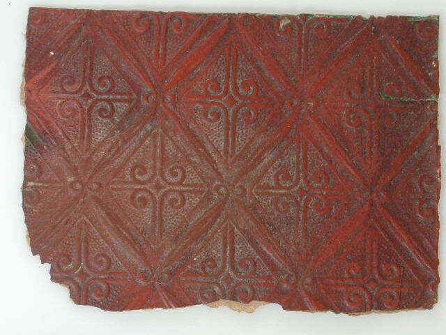 - Fragmenten van behang, linoleum en kunstleren stoelbekleding uit Tuschinski (stukje leerbehang), 1911 - 1931