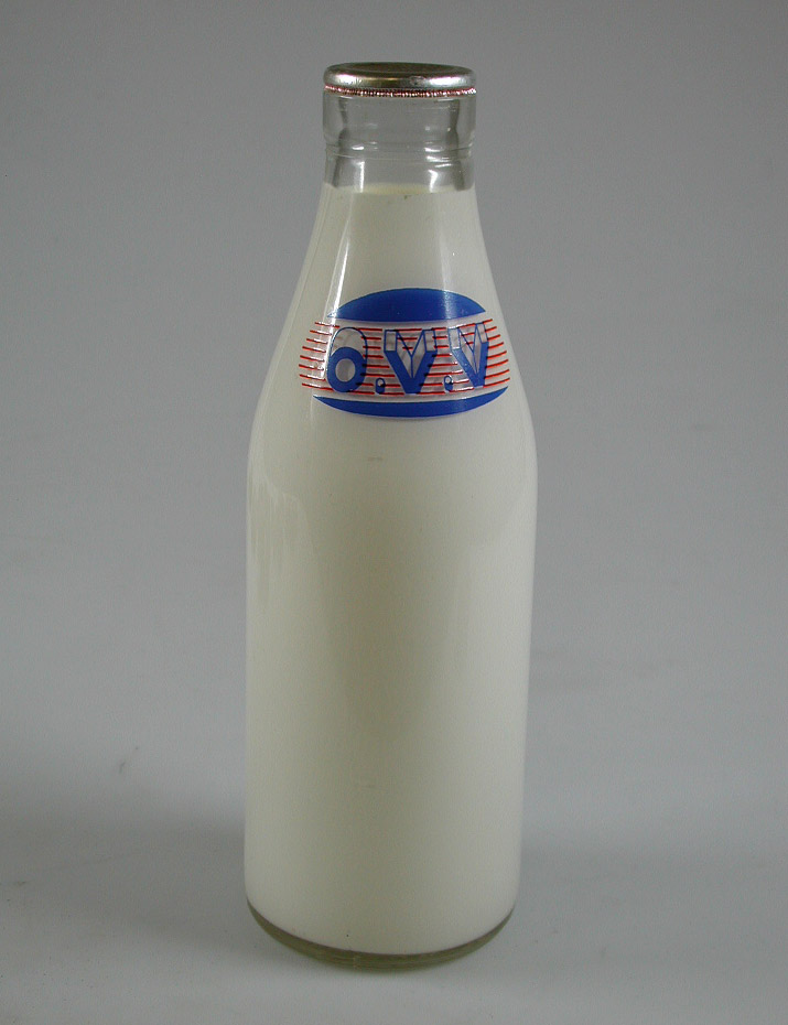 - Drie reclamemelkflessen O.V.V. (fles), 1900 - 1999