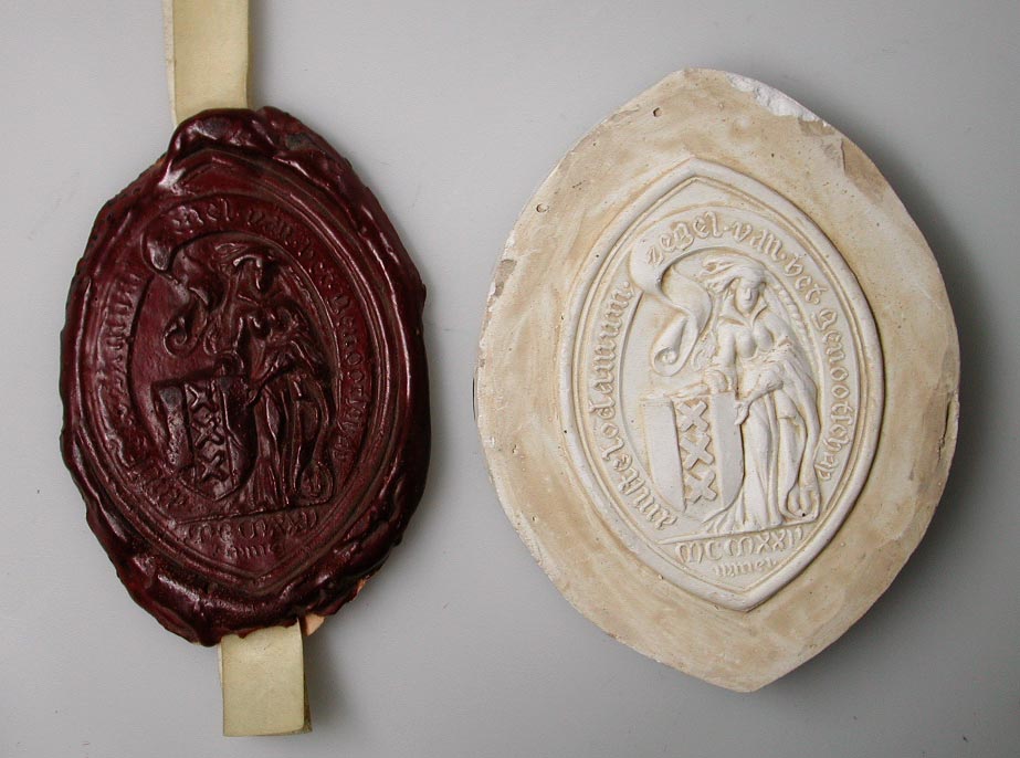- Lakzegel en gipsen stempel Genootschap Amstelodamum, 1925