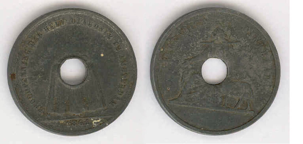 voorzijde: in een omschrift zit de gepersonificeerde Armoede met uitgestoken rechterhand met haar linkerhand rustend op een lam, op haar hoofd een duif en een juk op haar schouders. In de afsnede een leeg veld.