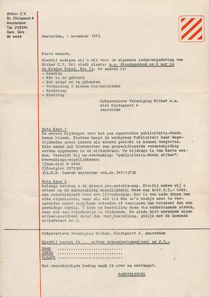 - Documentatie over Witkar (uitnodiging algemene ledenvergadering), 1973 - 1978
