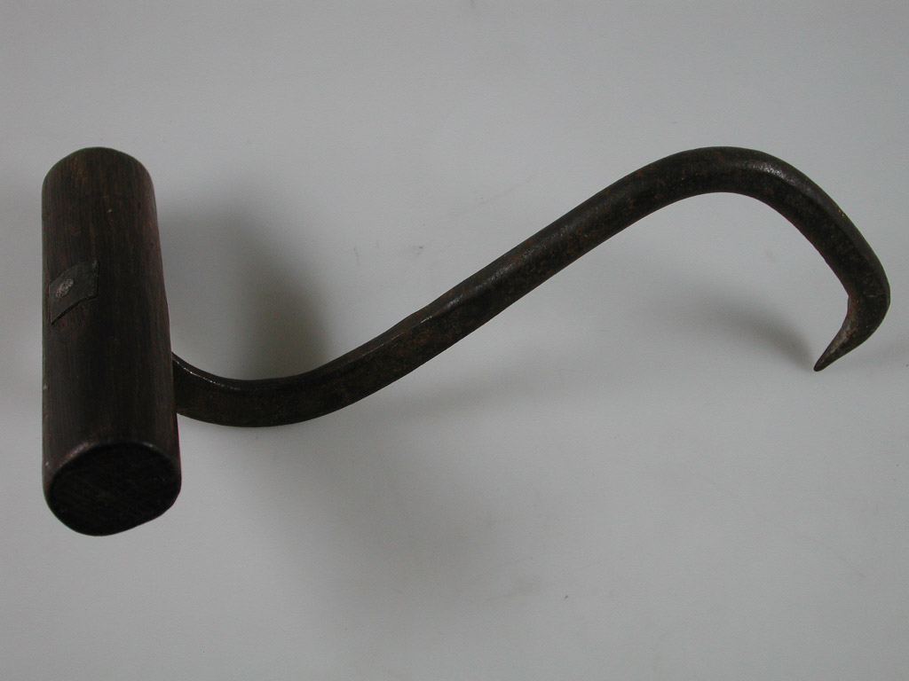 Haak gebruikt door schuitenvoerder bij 'Oranje-Nassauveen' voor laden en lossen van balen.- Trefwoorden