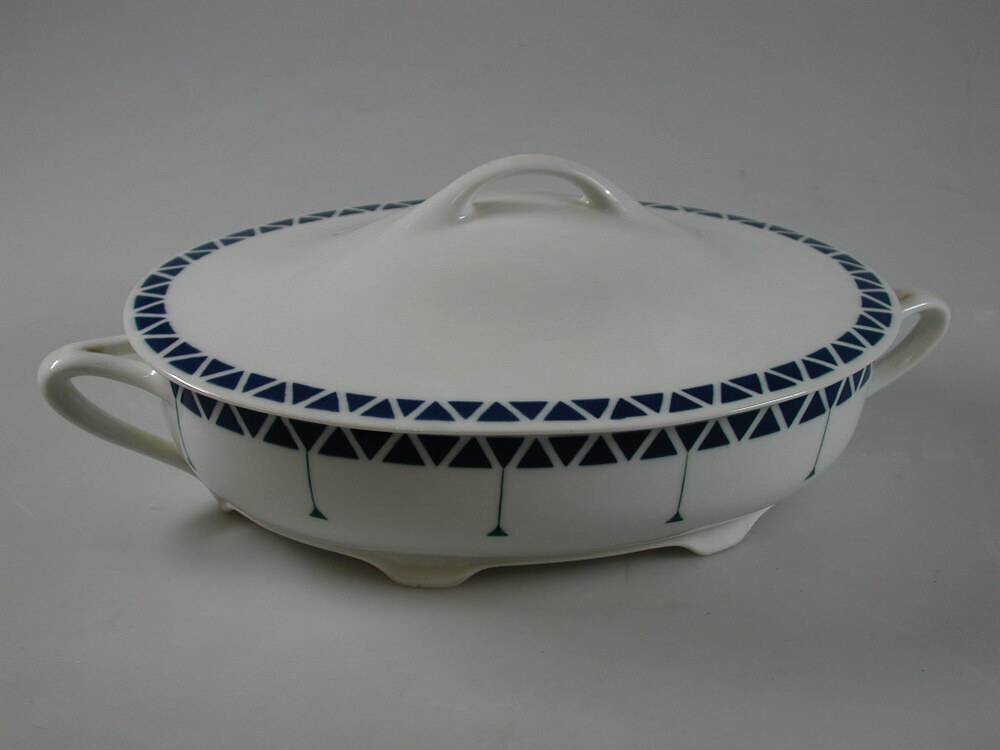 Dit serviesonderdeel komt uit het bezit van de Amsterdamse architect Abraham Salm (1857-1915). Samen met zijn vader Gerlof Bartholomeus Salm (1831-1897) heeft Abraham een grote bijdrage geleverd aan de stedenbouwkundige veranderingen in Amsterdam in de tweede helft van de negentiende eeuw. Waar G.B. Salms naam onlosmakelijk verbonden is met de bouw van Artis in de Plantage, staat zoon Abraham vooral bekend om zijn herenhuizen, stadsvilla’s, (sigaren)fabrieken en paardentramremises, aanvankelijk in classicistische, later in meer historiserende eclectische stijl. Daarnaast ontwierp hij ook interieuronderdelen. Dit 47-delige servies is afkomstig uit het door A. Salm ontworpen huis aan de Weesperzijde 26, waar hij zelf woonde en werkte. Salm heeft het servies aan het begin van de 20ste eeuw gekocht op de Wereldtentoonstelling in Duitsland. ( Sarah Remmerts de Vries)