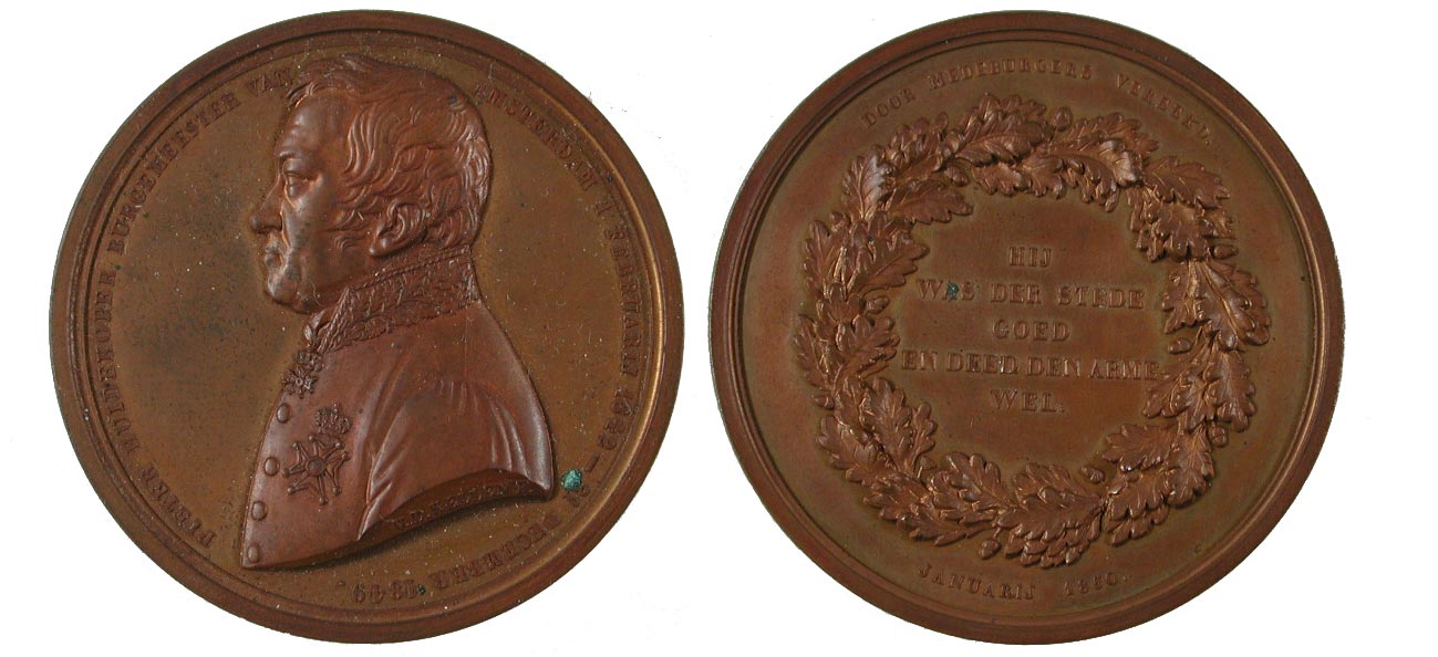 omschrift keerzijde: DOOR MEDEBURGERS VEREERD. / JANUARIJ 1850