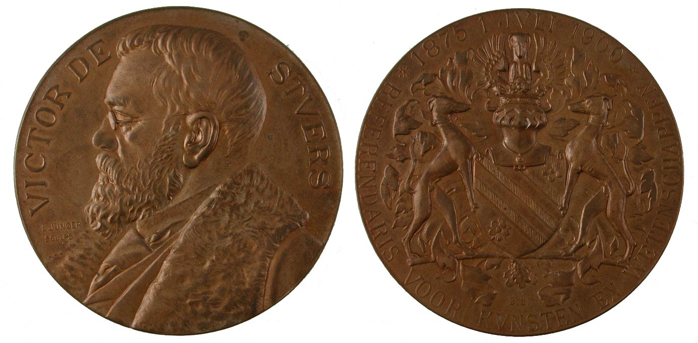 omschrift keerzijde: 1875 1 JVLI 1900 * REFERENDARIS VOOR KVNSTEN EN WETENSCHAPPEN *