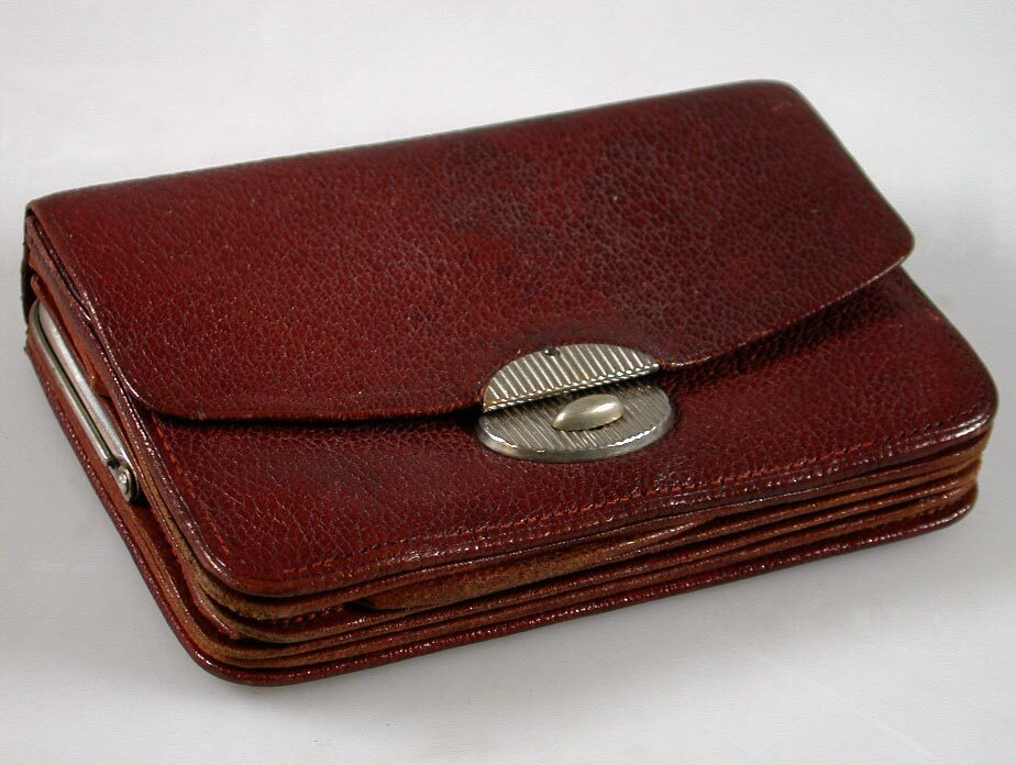 Deze lederen portemonnee komt uit het bezit van de Amsterdamse architect Abraham Salm (1857-1915). Samen met zijn vader Gerlof Bartholomeus Salm (1831-1897) heeft Abraham een grote bijdrage geleverd aan de stedenbouwkundige veranderingen in Amsterdam in de tweede helft van de negentiende eeuw. Waar G.B. Salms naam onlosmakelijk verbonden is met de bouw van Artis in de Plantage, staat zoon Abraham vooral bekend om zijn herenhuizen, stadsvilla’s, (sigaren)fabrieken en paardentramremises, aanvankelijk in classicistische, later in meer historiserende eclectische stijl. Daarnaast ontwierp hij ook interieuronderdelen. Deze portemonnee is afkomstig uit het door A. Salm ontworpen huis aan de Weesperzijde 26, waar hij zelf woonde en werkte. ( Sarah Remmerts de Vries)