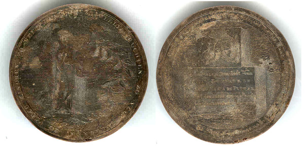 voorzijde: alliantiewapen: de familiewapens van Philip Zweers en Johanna Maria de Putter in een omschrift. Onder de wapenschilden een cartouche met opschrift.