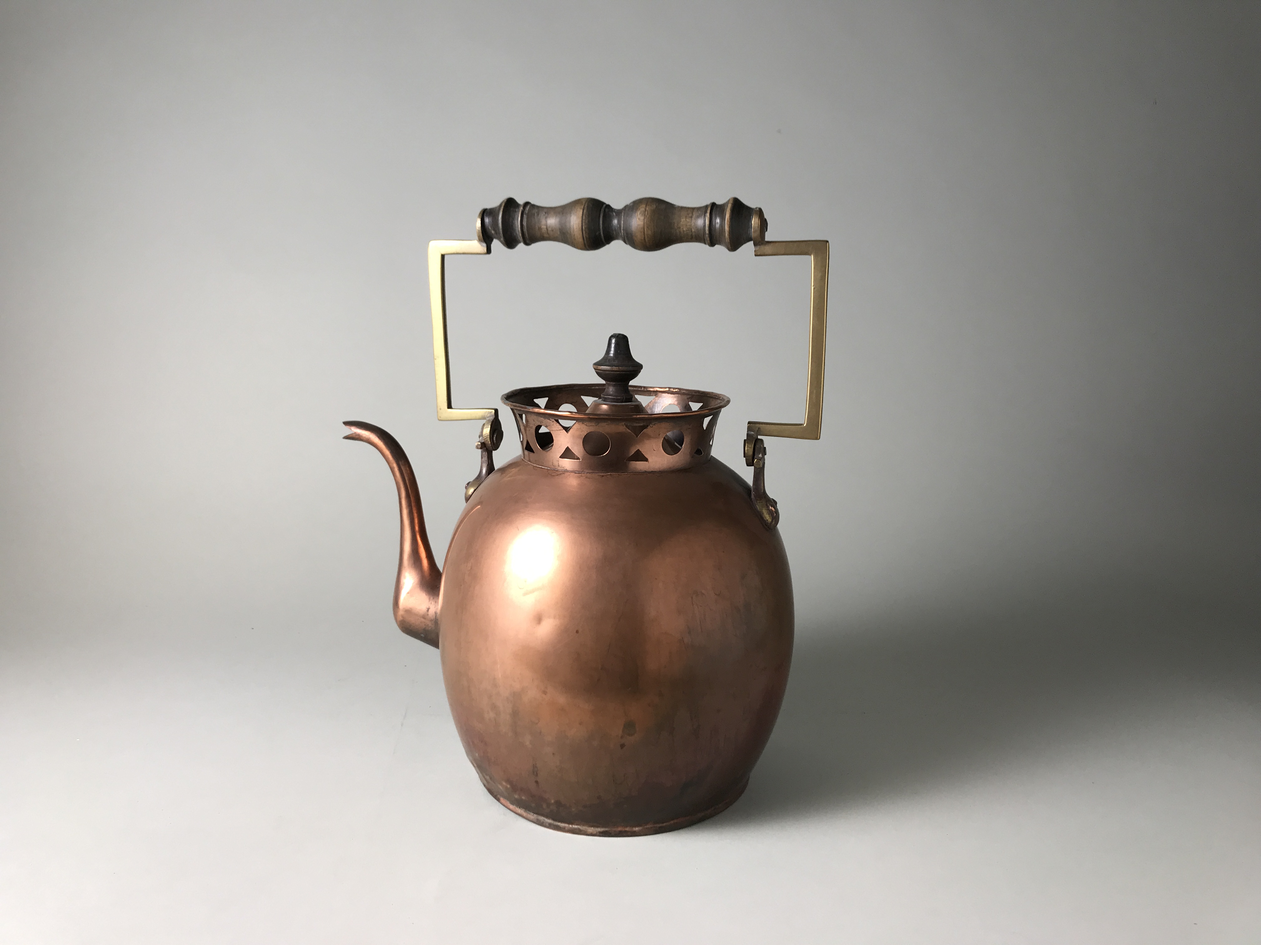 - hout (mahonie), geelkoper, koper, hout, metaal