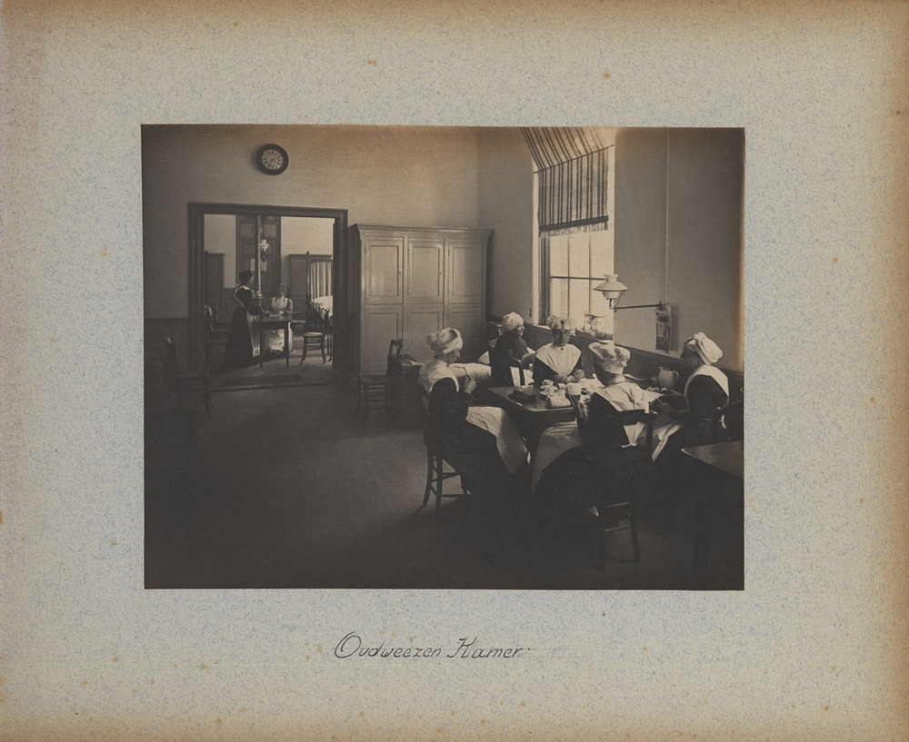 In het Amsterdamse Burgerweeshuis konden kinderen van Amsterdamse poorters (burgers met rechten om in de stad te wonen) terecht, die geen ouders of een moeilijke thuissituatie hadden. Het weeshuis was eeuwenlang een gesloten instelling, waar buitenstaanders niet zomaar naar binnen mochten. Voor de creatie van een fotoalbum, ter ere van het 25-jarige huwelijk van bouwkundige Pieter Heyn in 1904, werd een uitzondering gemaakt. Fotograaf August Stap maakte een unieke serie foto’s van het interieur, de wezen en het personeel van het Burgerweeshuis. Op de foto’s zijn de Burgerwezen tijdens hun dagelijkse bezigheden te zien. Zo komen onder meer de naailes voor meisjes, het ‘Slöjd’-onderwijs voor jongens en de zondagse gang op weg naar de kerk voorbij. Een groot aantal van de foto’s zijn later gebruikt voor de productie van een serie ansichtkaarten in kleur. ( Sarah Remmerts de Vries)