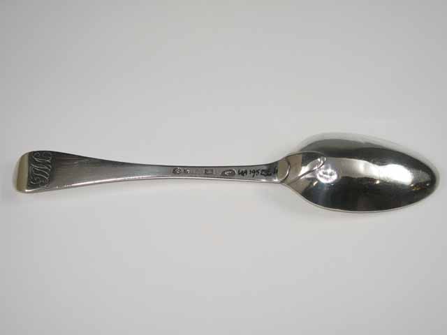 Tafellepel, rechte steel met middenribbe en ronde opstaande kop, ovale lepelbak en dubbel Amsterdams lof. Op onderzijde van steel is een monogram gegraveerd met de initialen: DIACH/, de afkorting van Diaconie Corvershof.
