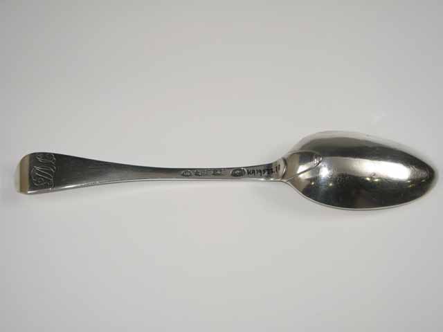 Tafellepel, rechte steel met middenribbe en ronde opstaande kop, ovale lepelbak en dubbel Amsterdams lof. Op onderzijde van steel is een monogram gegraveerd met de initialen: DIACH/, de afkorting van Diaconie Corvershof.
