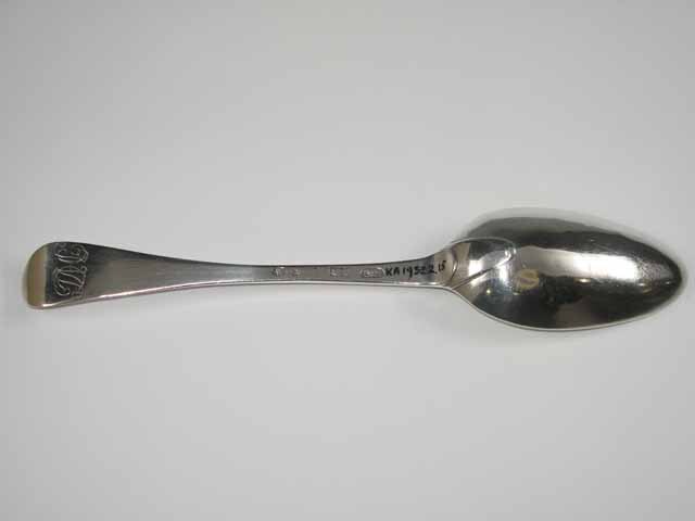 Tafellepel, rechte steel met middenribbe en ronde opstaande kop, ovale lepelbak en dubbel Amsterdams lof. Op onderzijde van steel is een monogram gegraveerd met de initialen: DIACH/, de afkorting van Diaconie Corvershof.