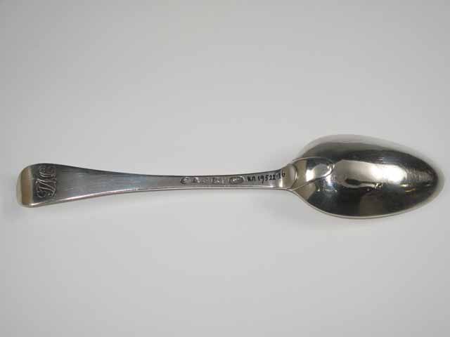 Tafellepel, rechte steel met middenribbe en ronde opstaande kop, ovale lepelbak en dubbel Amsterdams lof. Op onderzijde van steel is een monogram gegraveerd met de initialen: DIACH/, de afkorting van Diaconie Corvershof.