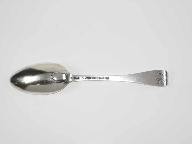 Tafellepel met rechte steel, middenribbe, ronde opstaande kop, ovale lepelbak en dubbel Amsterdams lof. Op onderzijde is een monogram gegraveerd met de initialen: DIACH/, de afkorting van Diaconie Corvershof.