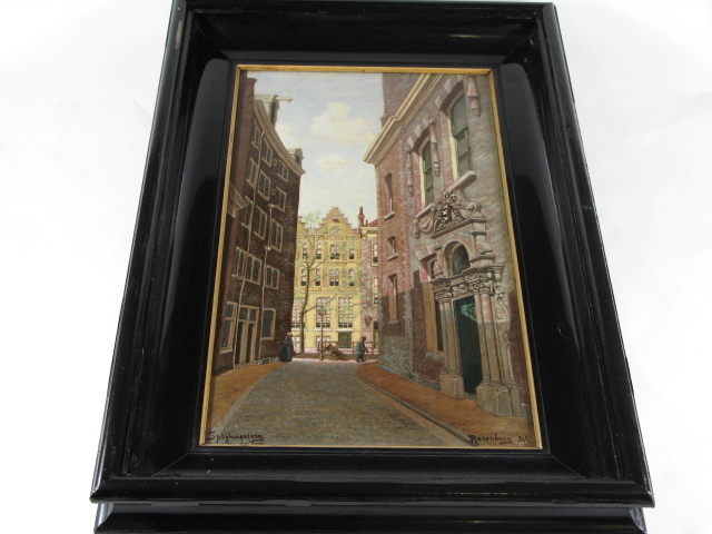 Een tegeltableau is een vlak, bestaande uit meerdere aardewerken tegels, die door een schildering één voorstelling vormen. Tegeltableaus werden vanaf de zeventiende eeuw populair, omdat ze zowel decoratief als functioneel waren. Ze boden uitkomst tegen vocht, waar huisjes langs grachten en kanalen nogal eens last van hadden, en waren gemakkelijk schoon te houden. Daarnaast zorgden de uit Italië afkomstige vormen, kleuren en motieven voor een vrolijke aanblik rond de haard of in de gang. In de periode van de Jugendstil (ca. 1900) leefde de aandacht voor tegeltableaus opnieuw op. Families en bedrijven die het zich konden veroorloven, lieten wanden, gevels en portieken versieren met tegeltableaus in Art Nouveau stijl. Ook voor jubilea en andere feestelijke gelegenheden werden soms tegeltableaus vervaardigd. Dit tegeltableau van de Spinhuissteeg is vervaardigd door de Haagse Plateelfabriek Rozenburg in 1907. ( Sarah Remmerts de Vries)
