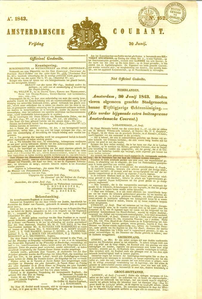 - Amsterdamsche Courant, vrijdag 30 juni 1843, 1843