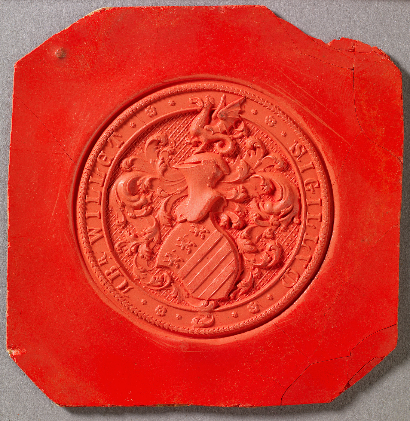 - randschrift rand zegel: SIGILLVM/ ABr. WILLET/: wapen van Abraham Willet