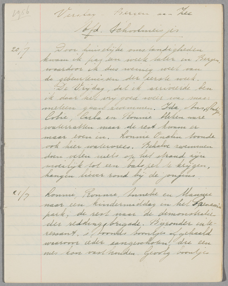 - Verslag van vakantie Afd. Schoolmeisjes te Bergen aan Zee, 1956, 1956